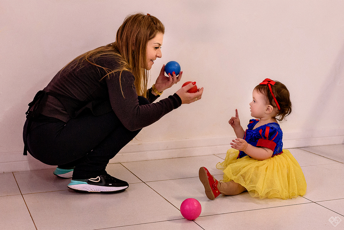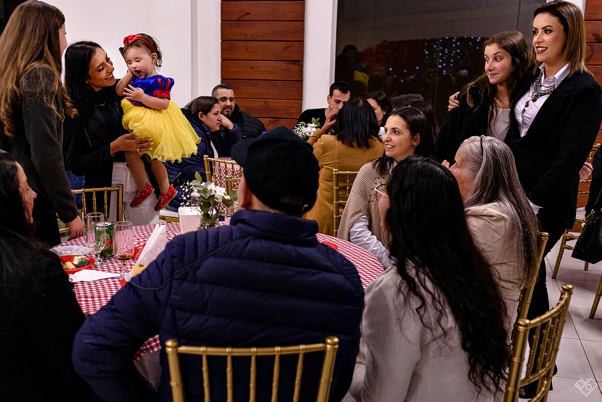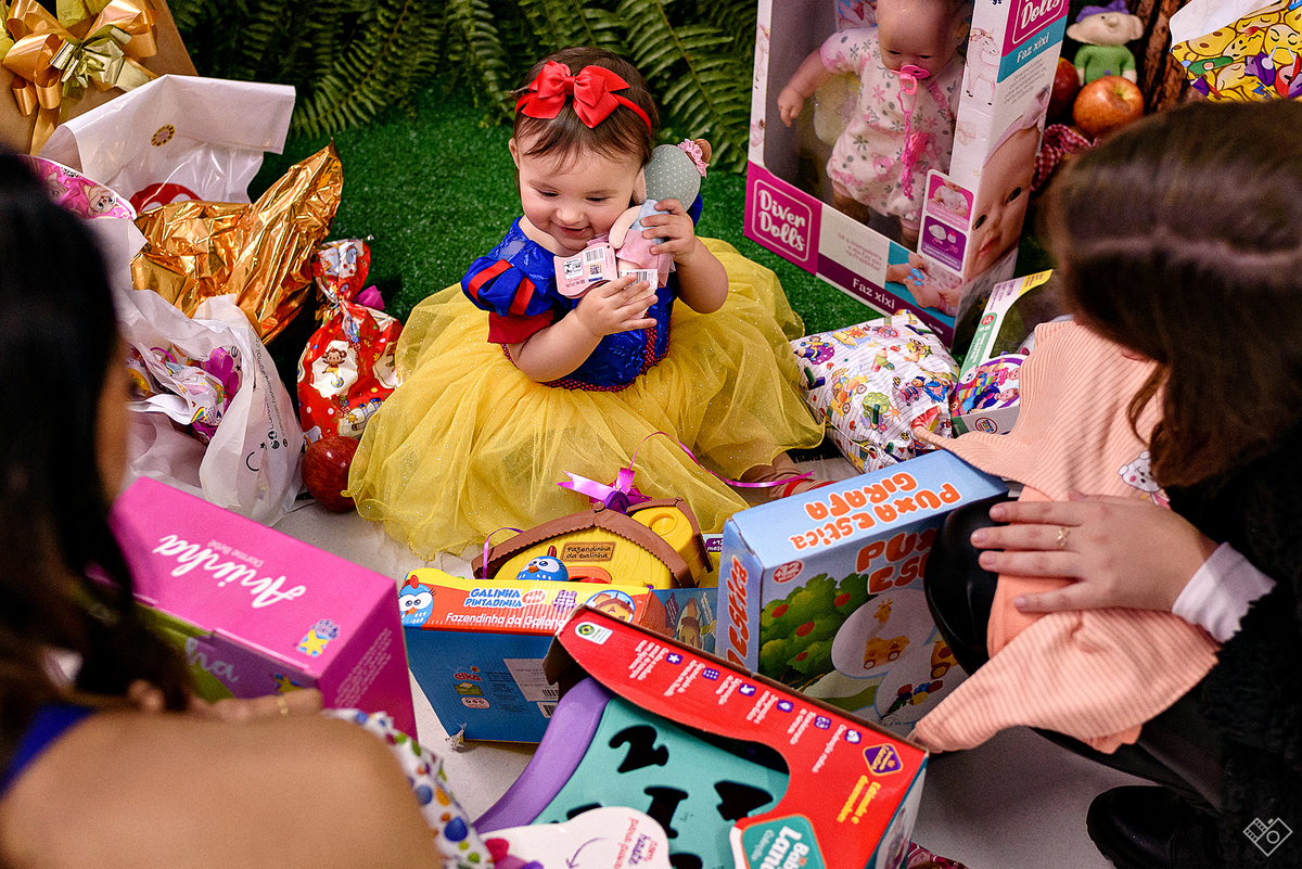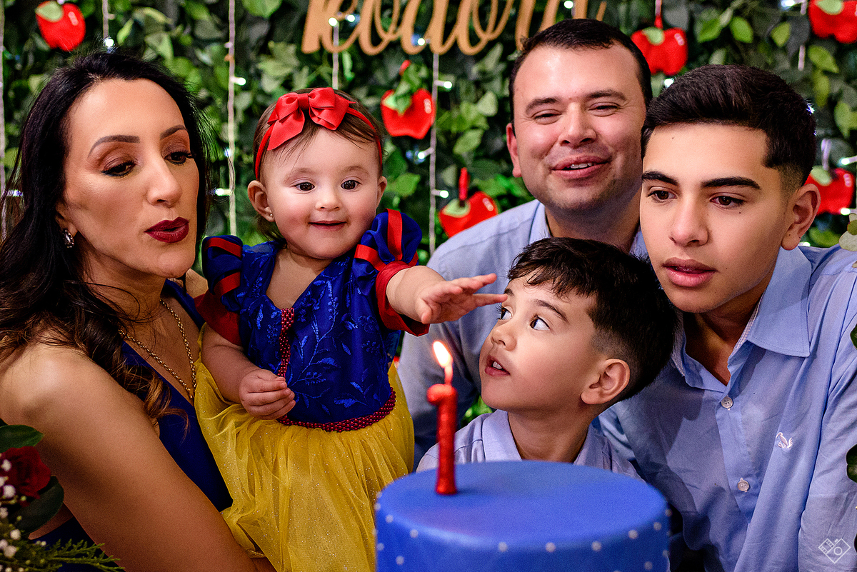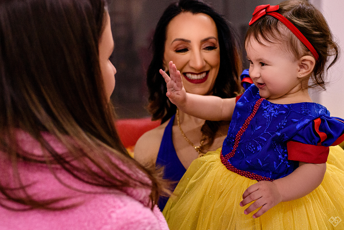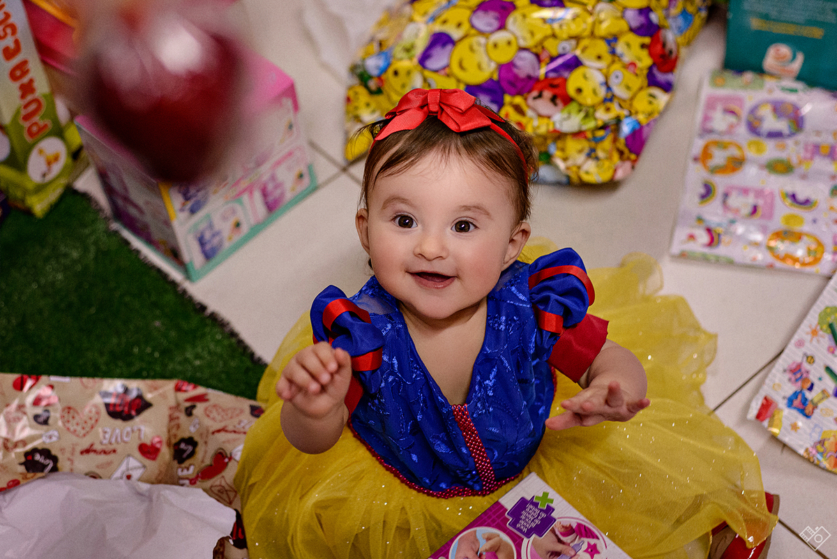 Mas aqui estamos para falar deste primeiro aninho, que festa linda onde a Teodora parecia mais uma princesa vinda dum conto de fadas, aliás, foi com o tema da princesa Branca de Neve que a festa foi pensada e planejada pela mamãe Andrea. Teodora estava feliz, riu e brincou, tirou foto com todos os convidados e sempre abrindo aquele sorriso quando o papai chamava de "linda e perfeita".