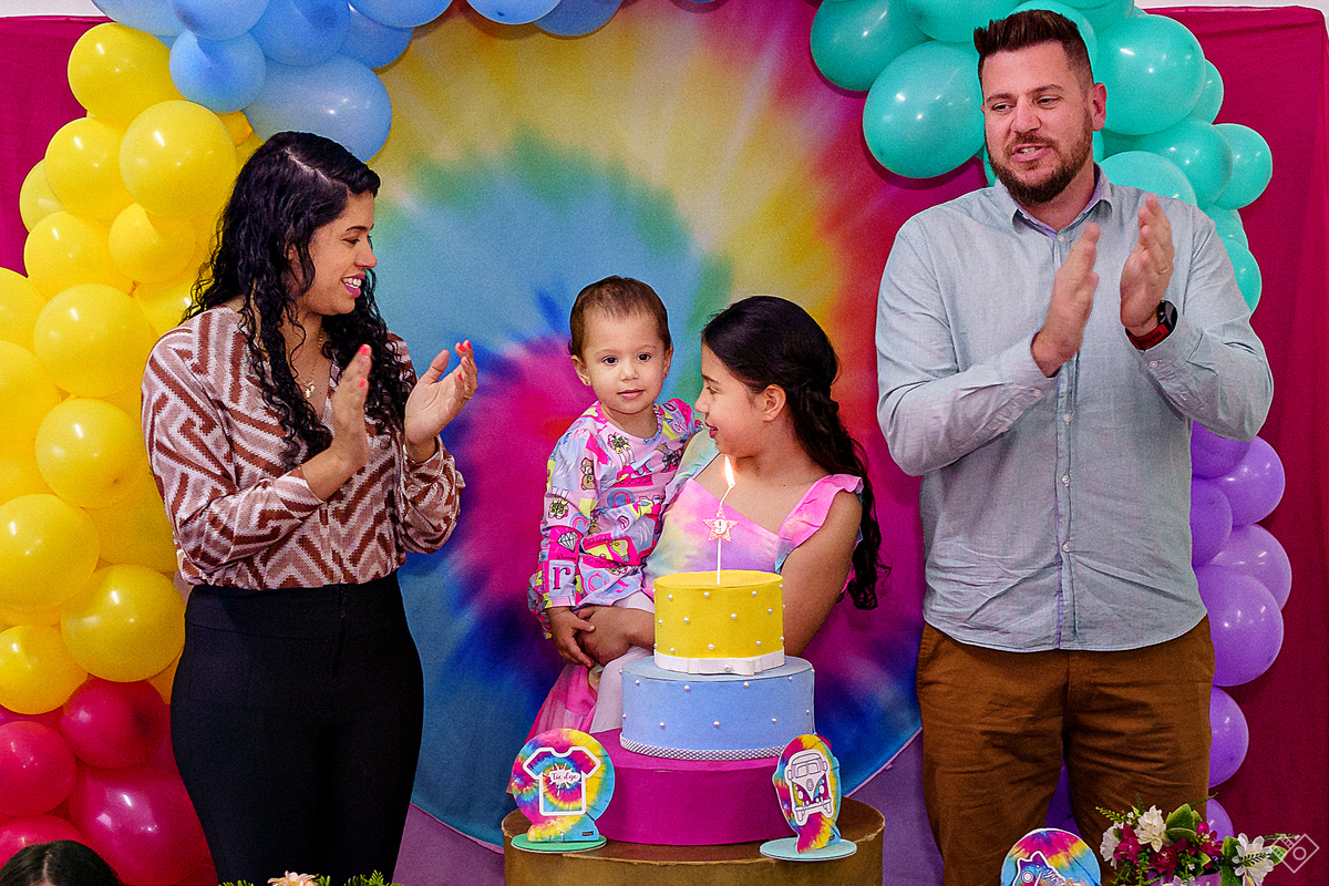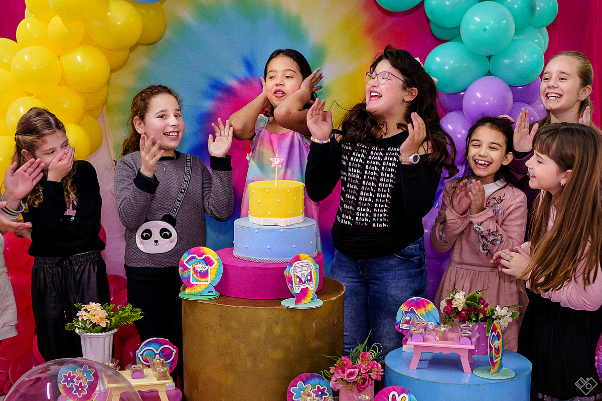 A Raissa escolheu o tema tie dye para comemorar seus 9 anos e sua festa teve muita brincadeira neste lugar incrível.