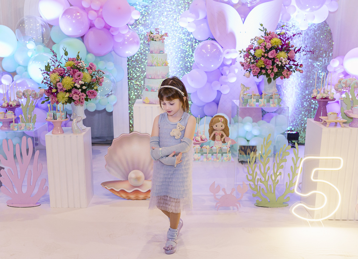 Hoje quero compartilhar um evento muito especial que tive a honra de registrar: o quinto aniversário da doce e delicada Cecília, que escolheu o tema sereia para sua festa! 🧜♀️