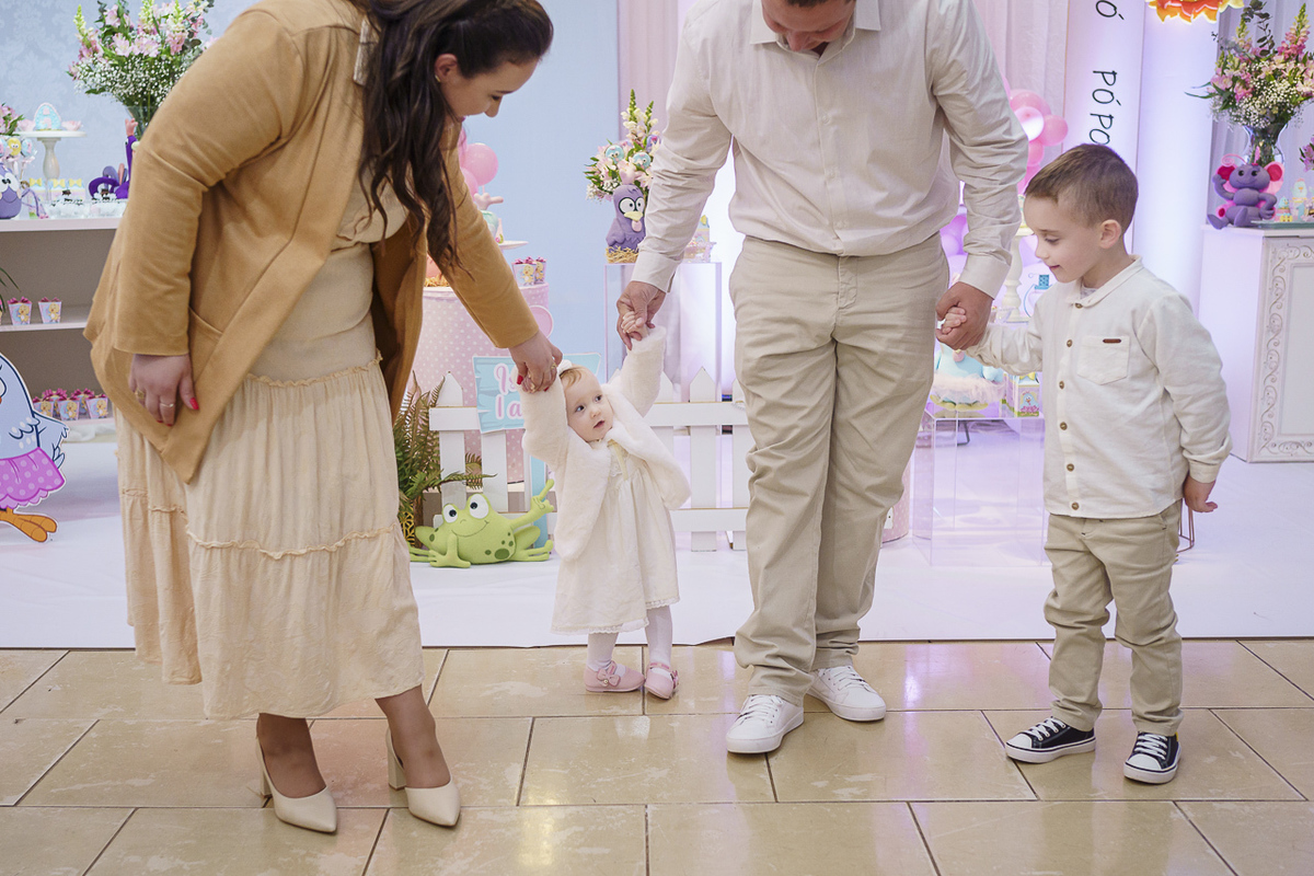 Em meio às cores suaves e abraços calorosos, vivenciamos a doce Isabela celebrar seu primeiro aninho de vida. A festa foi um verdadeiro mergulho no universo encantador da galinha pintadinha (com aqueles personagens queridos pelos bebês), mas numa paleta de cores delicadas que trouxeram ainda mais charme à decoração.