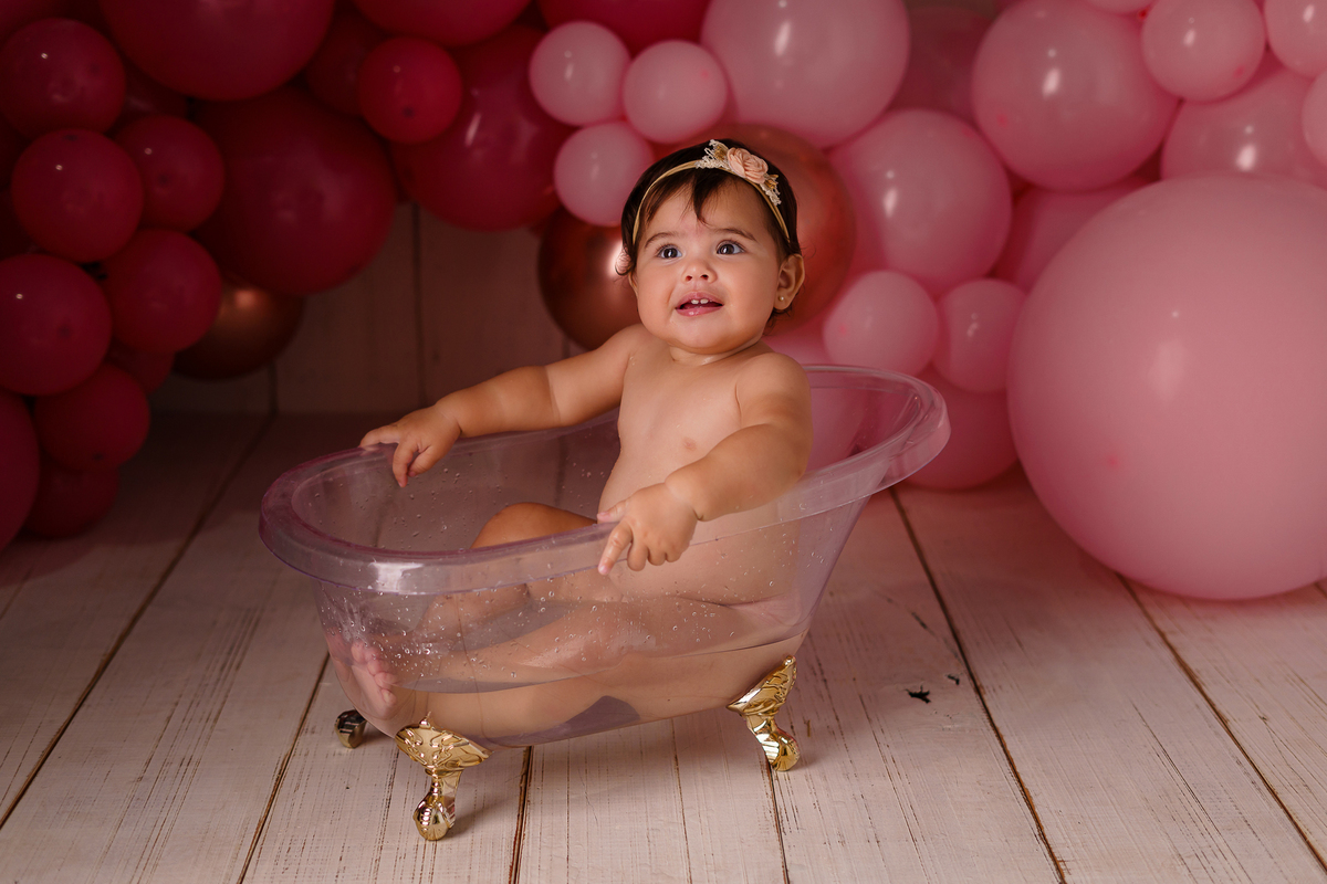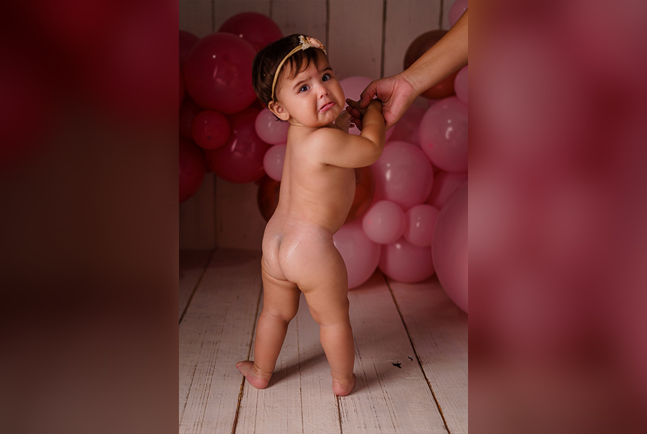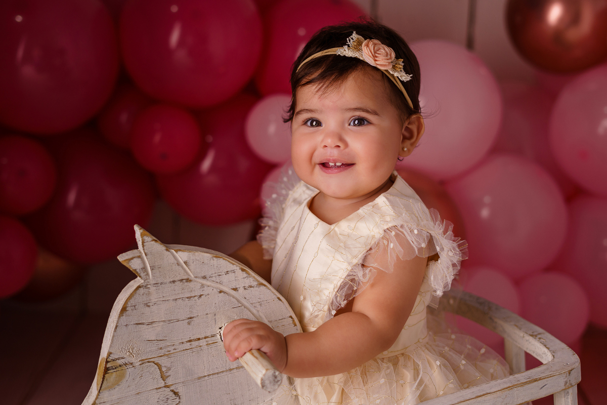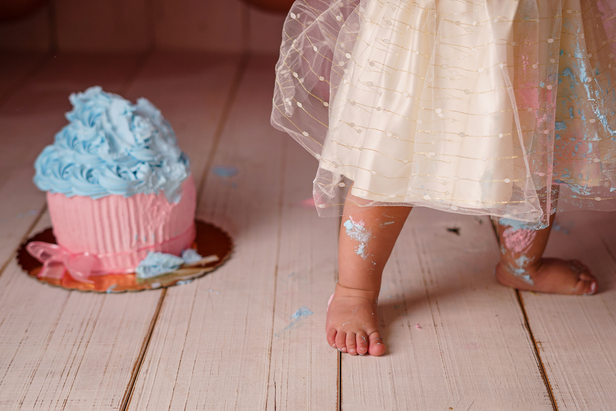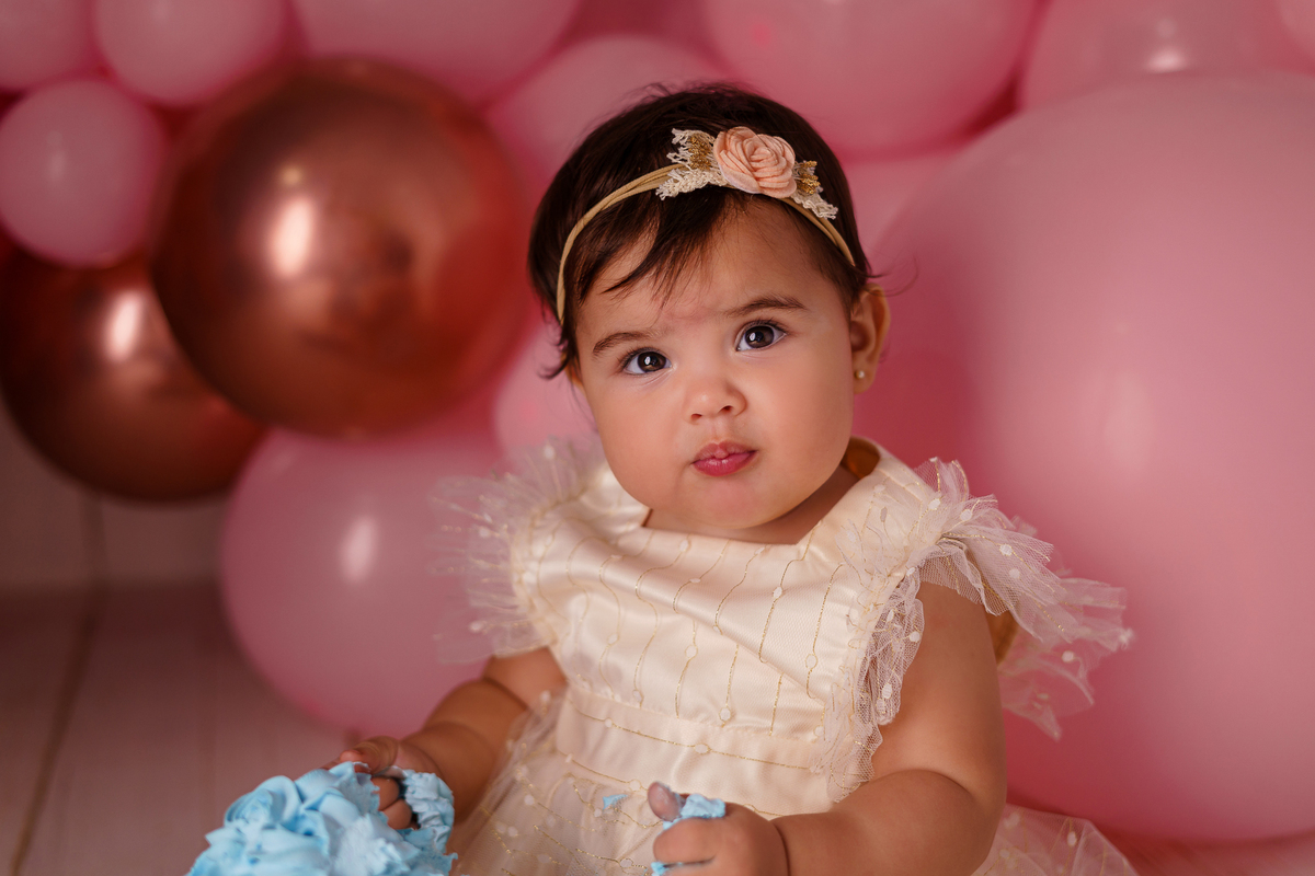 O ensaio Smash the Cake traz um monte de reações lindas de cada bebê e, no caso da Manu, ela fugiu do bolinho... foram muitos sorrisos nas fotos antes e depois mas, apesar dela ter colocado a mão e provado, não curtiu muito o bolo.