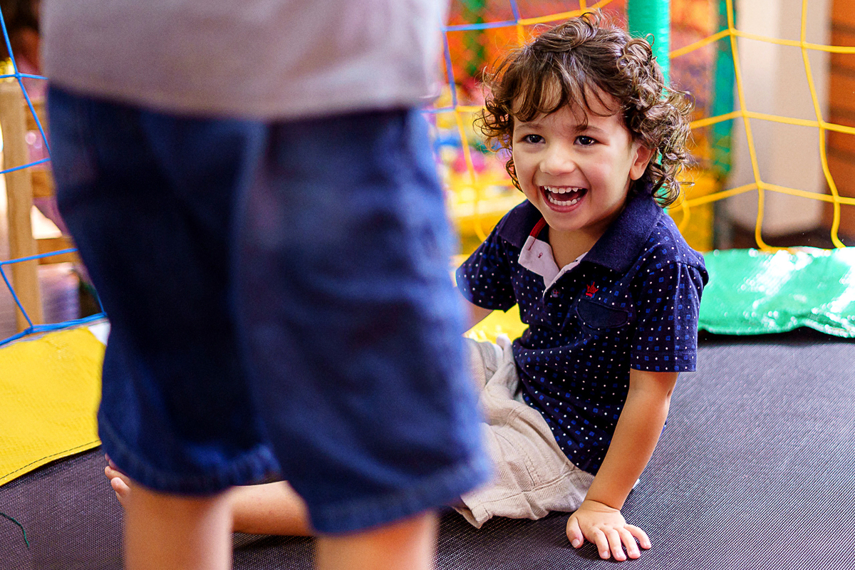 Teve até brincadeira com os amigos no pula-pula e na piscina de bolinha, imagina que diversão!