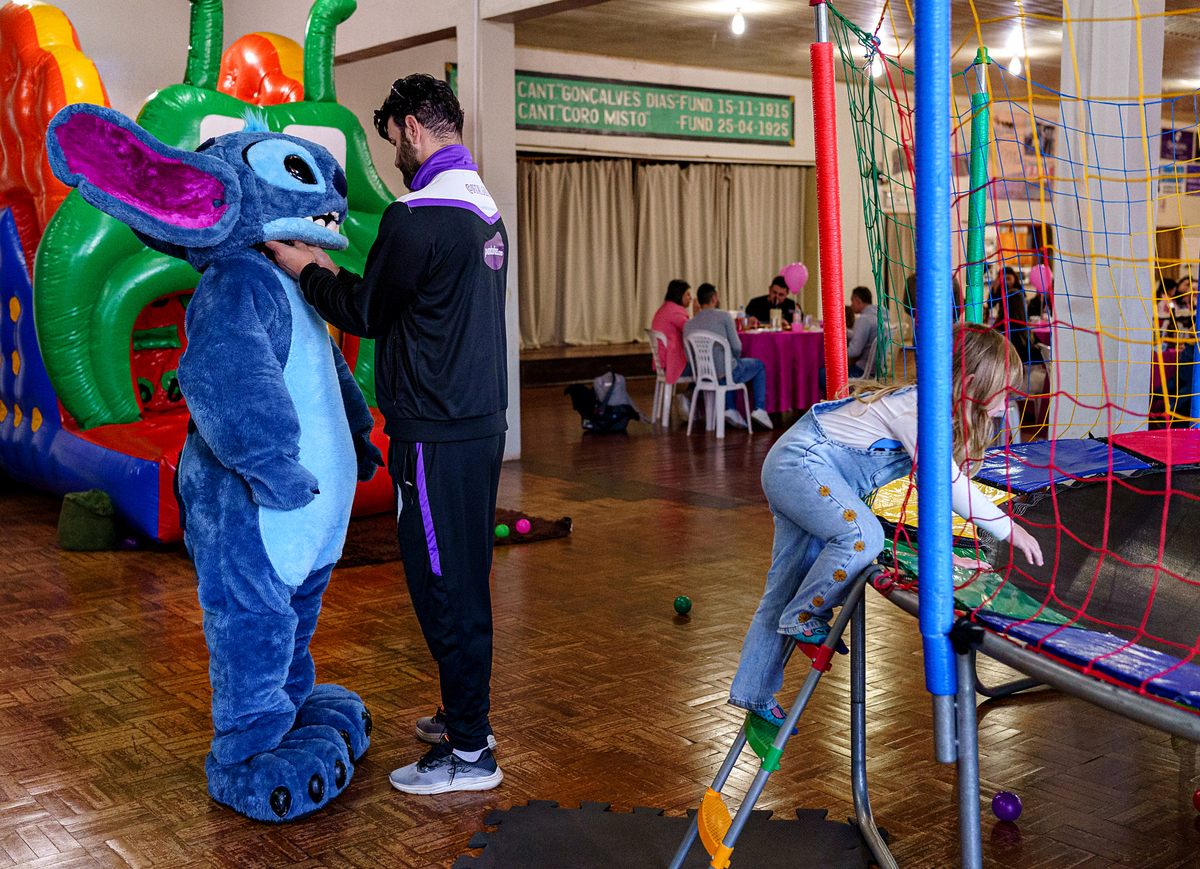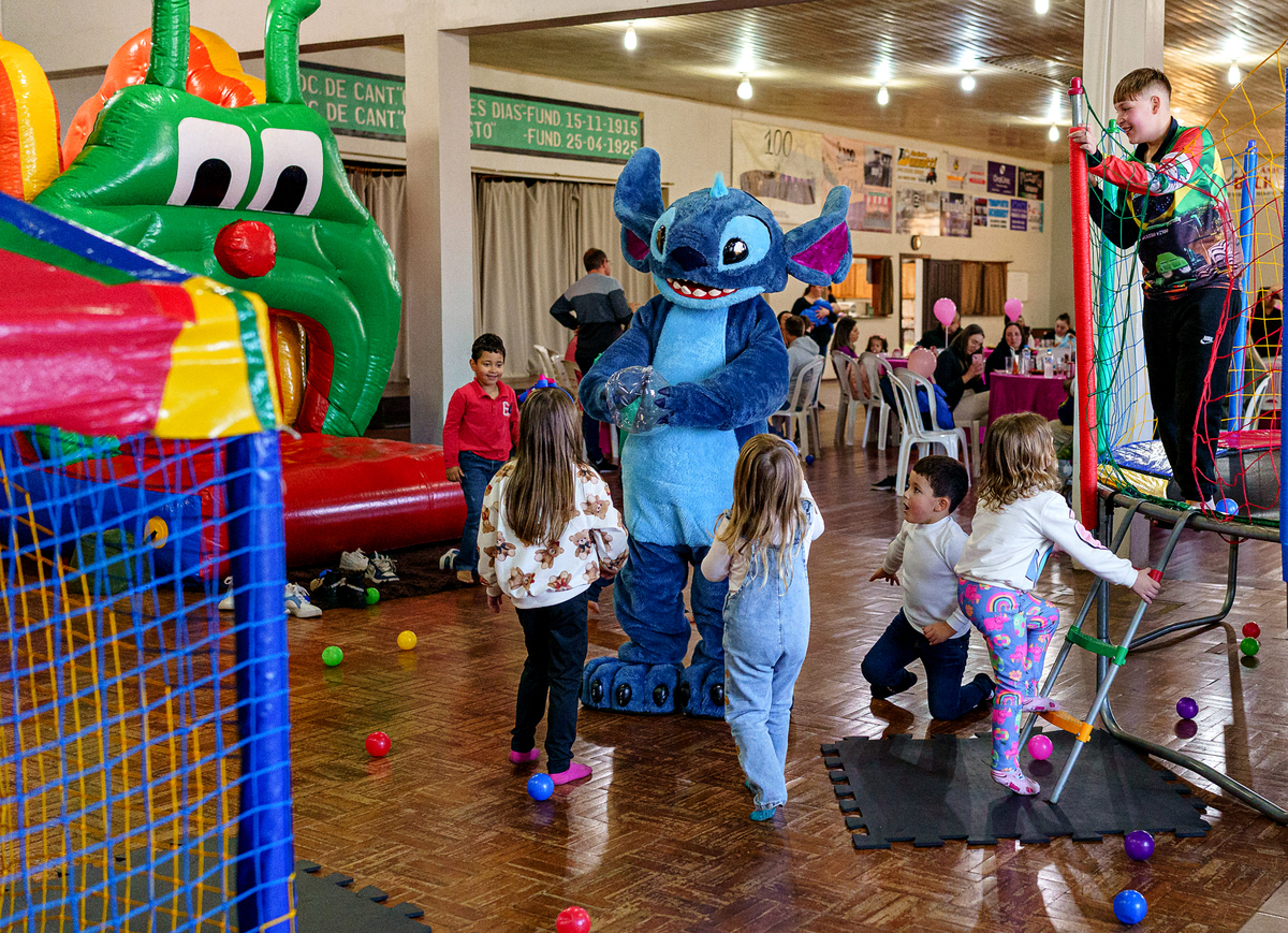 Os 4 anos da Heloísa foram comemorados em grande estilo no pavilhão da comunidade, cercada de amigos, familiares e… um convidado pra lá de especial: o simpático Stitch, da Disney! 💙