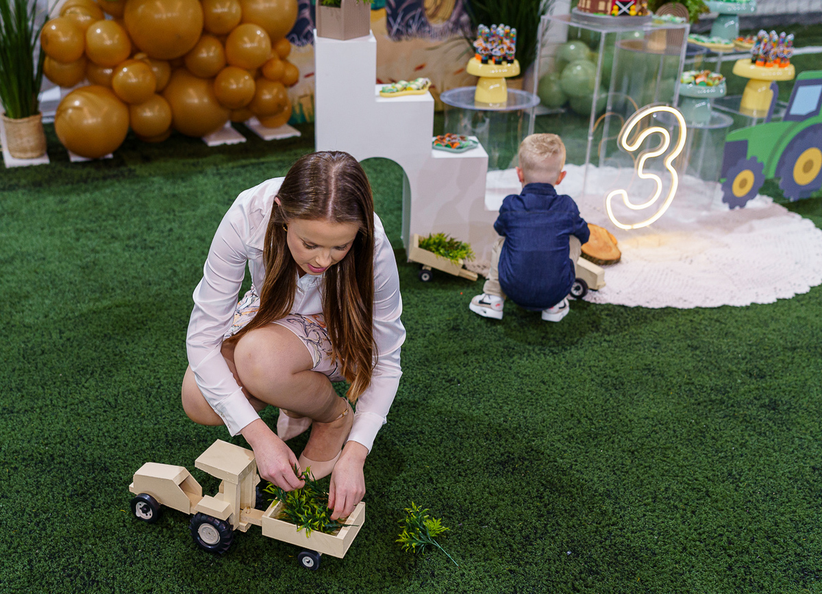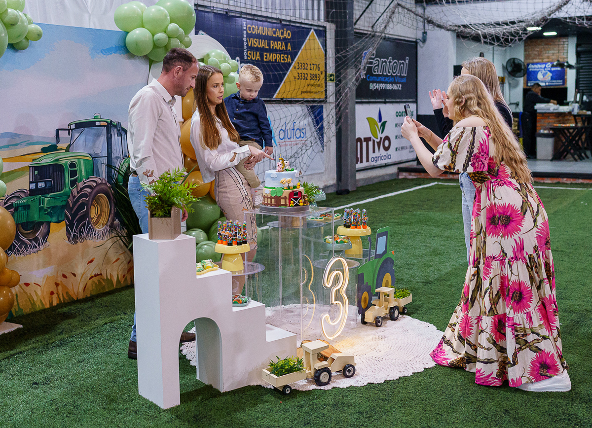 E para deixar tudo ainda mais especial, o tema escolhido não poderia ser mais fofo: fazendinha! Cada detalhe trouxe o clima de vida no campo, com bichinhos e cores que encantaram a todos. A decoração deixou o espaço ainda mais acolhedor, refletindo toda a alegria de uma infância vivida com intensidade.