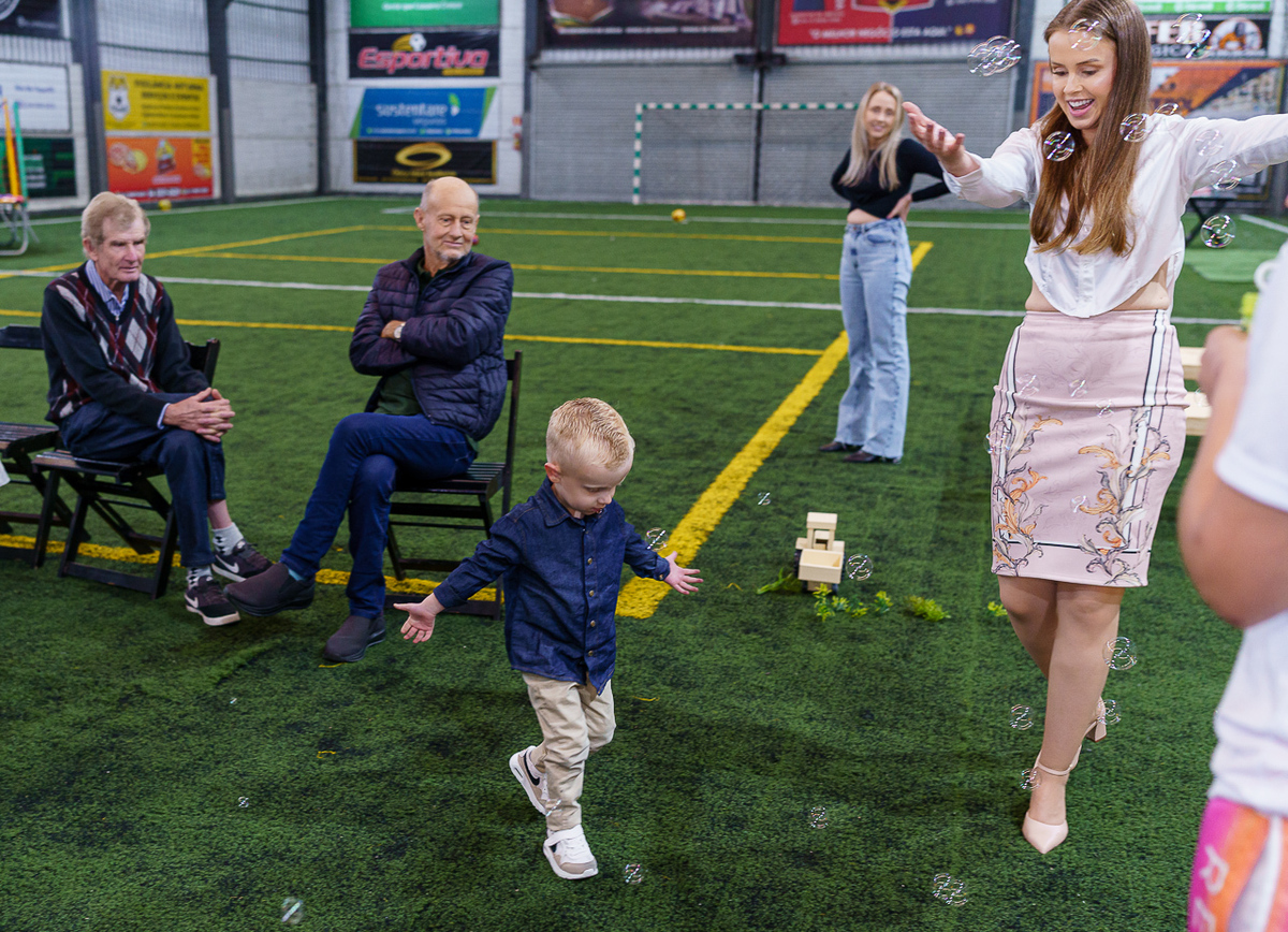 O campo society foi o cenário perfeito: espaço amplo, cheio de energia, que se transformou em um verdadeiro palco de brincadeiras entre o Lucas, seus amigos e seus pais. Foi lindo ver como ele aproveitou cada segundo, correndo, sorrindo e compartilhando momentos inesquecíveis.